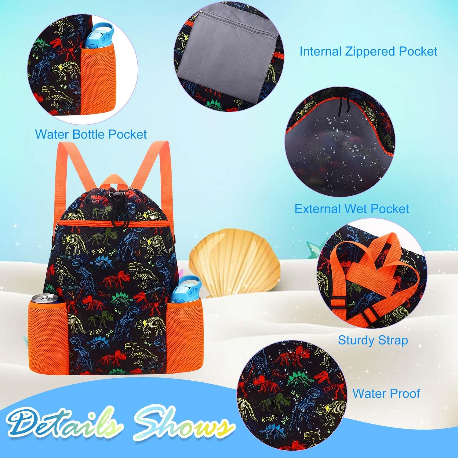 - SEPARATE SHOE POCKET-The kids beach bag closure has a separate drawstring and separate adjustable shoulder straps. This design stops the hassle of organizing straps. The bag also has front zippered shoe pockets for easy access to items. They can also use them as an gym bag overnight bag or kids pool bag.